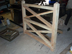 Kim and Jim finished the first of the new gates to go in front of the mill, a job that kept them under cover inside the stable workshop.